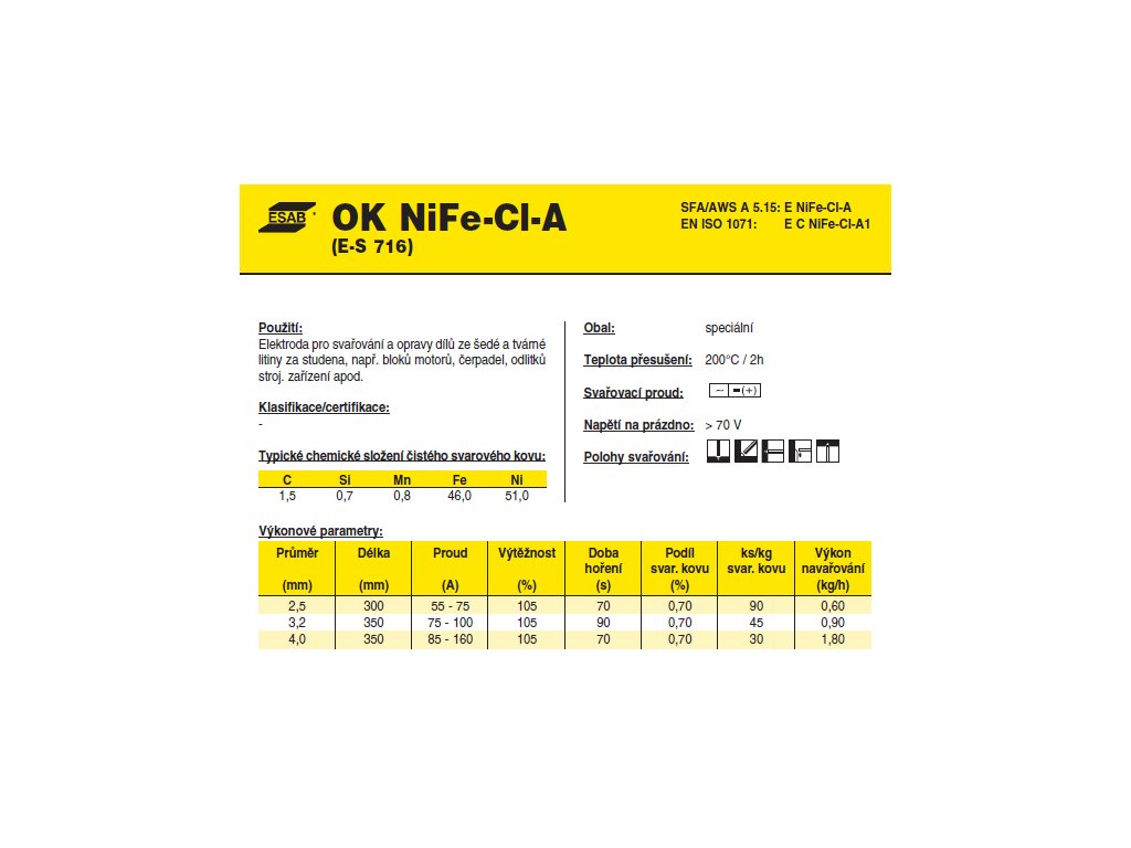 | Kategorie: | Přídavné svařovací materiály ESAB |