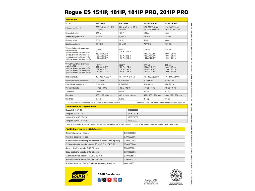 Nová funkce Pulse MMA zvyšuje výkon a zlepšuje řízení přívodu tepla, čímž minimalizuje deformace tenkých materiálů, usnadňuje svařování mimo polohu bez zápalů a snižuje rozstřik, čímž pomáhá účinně předcházet řadě vad při svařování. Rogue ES může svařovat metodou TIG měkkou nebo nerezová ocel prostřednictvím funkce „LIVE TIG“, což ještě zvyšuje univerzálnost.