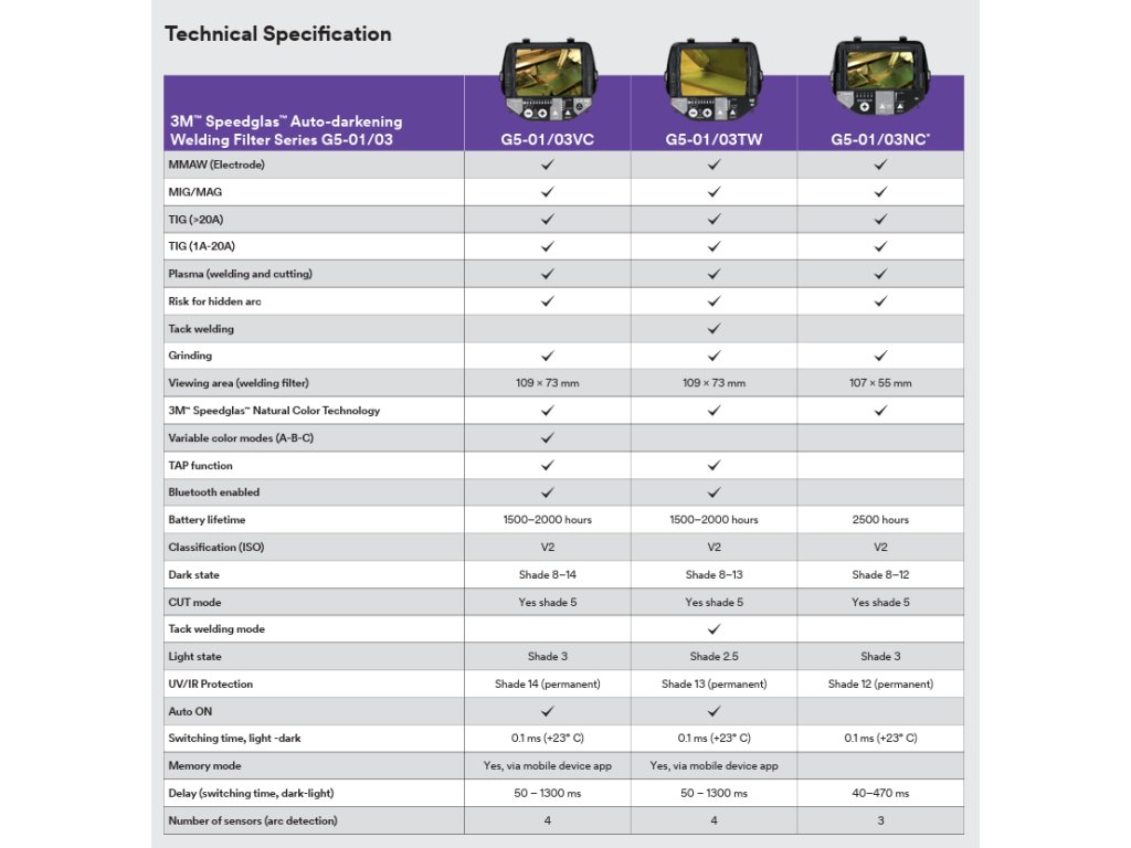 Svářečská kukla 3M™ Speedglas™ G5-03 E je všestranný a cenově výhodný model s kvalitou značky Speedglas™. Nabízí režimy broušení a řezání, rozšířené krytí a lehkou, štíhlou konstrukci. Je kompatibilní se samostmívacími filtry Speedglas™ včetně Natural Colour Technology, Variable Colour Technology a režimu tack svařování. Volitelné pracovní světlo umožňuje lepší viditelnost obrobku. Mnohé náhradní díly řady G5 jsou kompatibilní také s kuklami Speedglas™ G5-01, což snižuje skladové zásoby a umožňuje přizpůsobit vybavení.